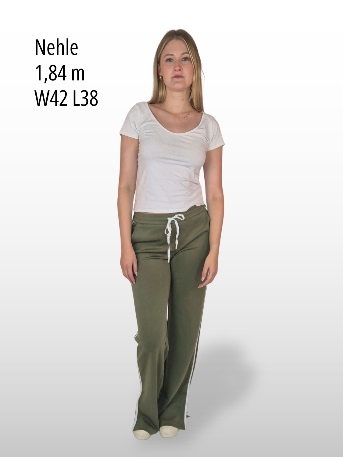 Modellinformationen: Nehle trägt Weite 42 / L38 bei einer Körpergröße von 1,84 m und einer Innenbeinlänge von 97 cm.