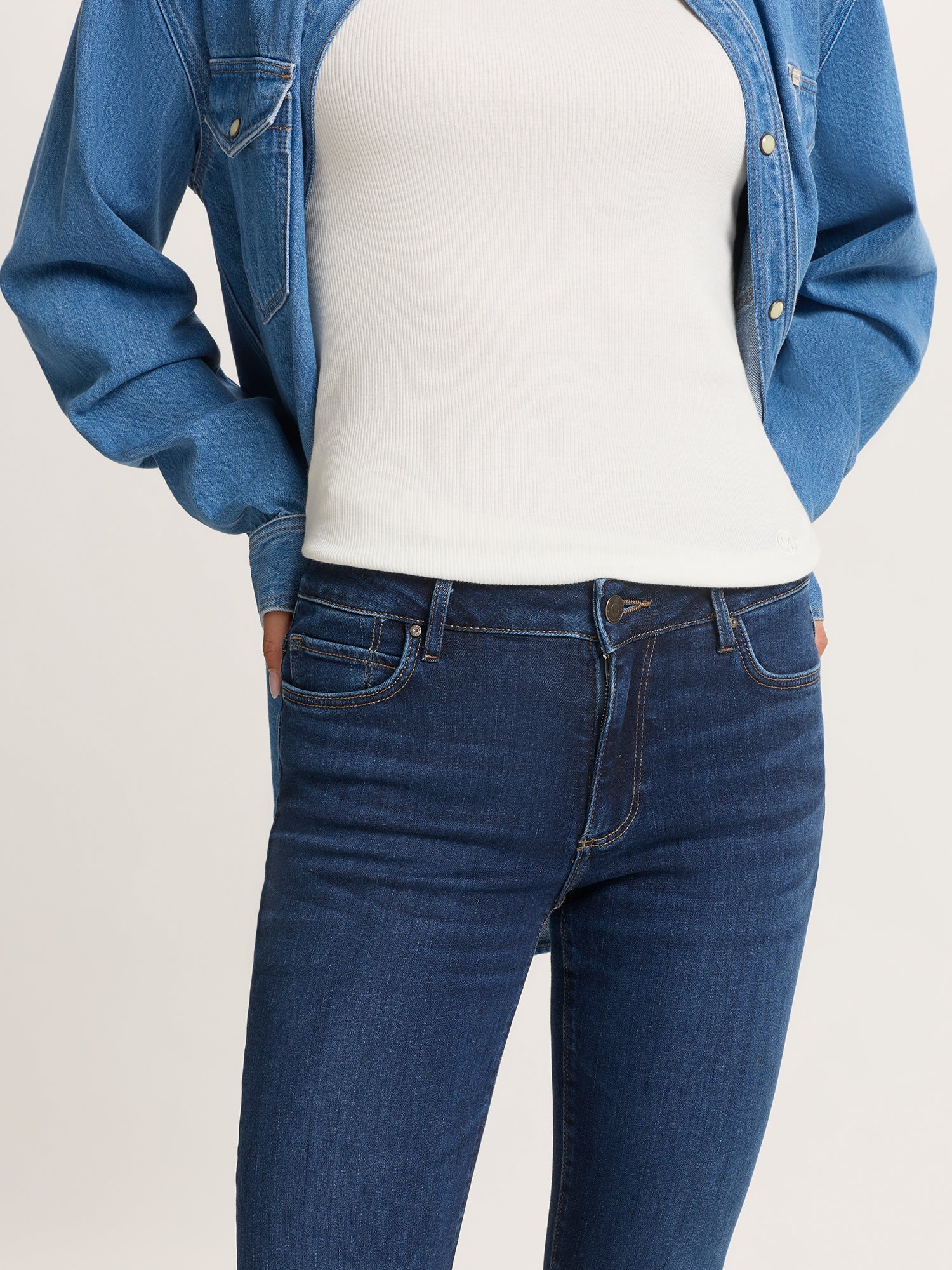 Die Damenjeans FAYE im tief eingefärbten Deep Blue Denimton ist der perfekte Allrounder für Alltag und Freizeit.