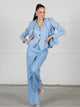 Only M – Damen Stoffhose mit weit auslaufenden Bein und elastischer Bund in Jeans Optik