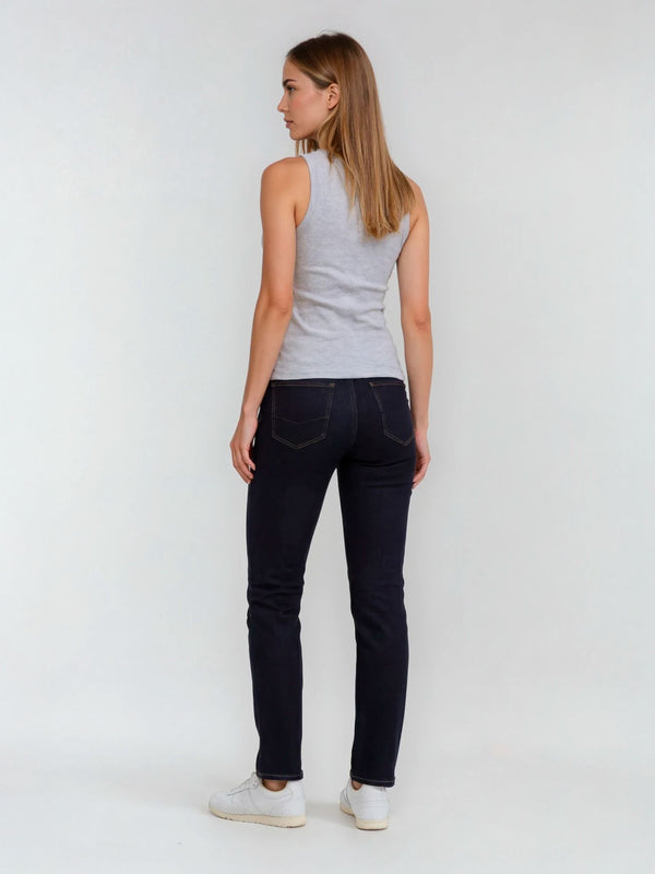 Die dunkle Rinsed-Waschung sorgt für einen sauberen, gepflegten Look und verleiht der Jeans eine edle Tiefe. Diese Farbgebung lässt sich mühelos kombinieren, ob klassisch mit weißer Bluse und Pumps oder lässig mit Sneakern und Strickpullover. Durch ihren minimalistischen Stil ist die Rose Jeans ein echtes Kombinationstalent und ein Must-have für jede Garderobe.