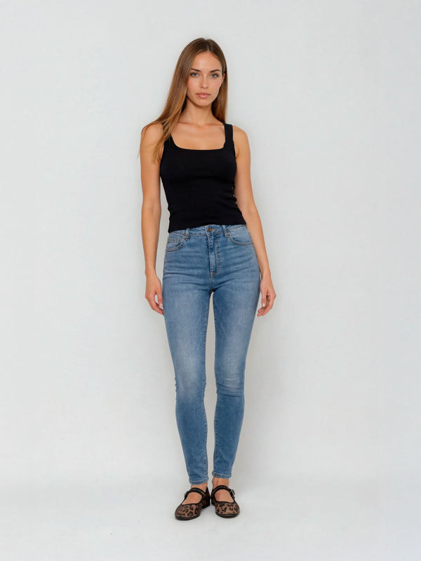 Das mittelblaue Denim verleiht der Jeans eine zeitlose Note, die sich mühelos kombinieren lässt, ob mit Sneakern und Shirt für den Alltag oder mit Bluse und Blazer für einen eleganten Auftritt. Der hochwertige Stretch-Denim sorgt für angenehmen Sitz und maximale Bewegungsfreiheit, während die schmale Passform das Bein optisch streckt.