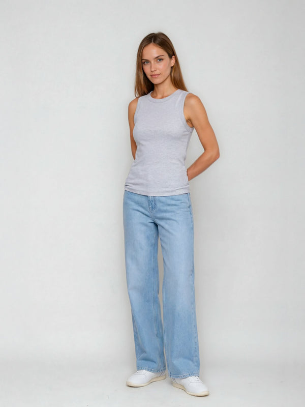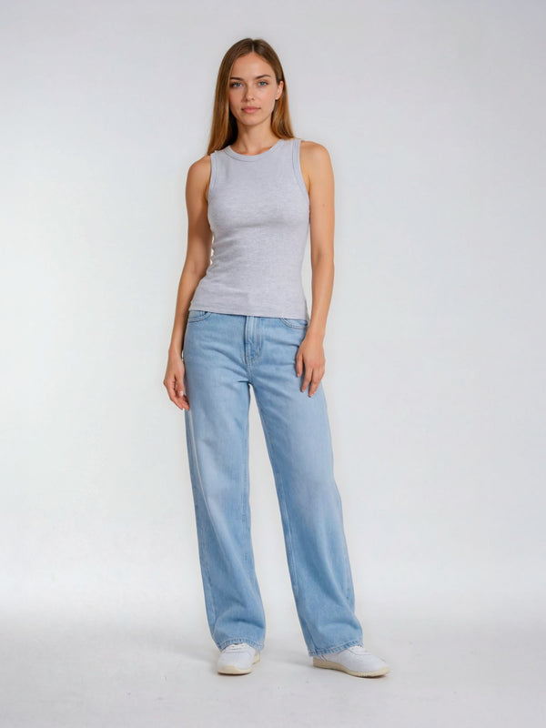 Damen Wide Leg Jeans mit hoher Leibhöhe und weitem Beinverlauf in hellem Denim