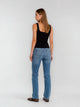 Die Regular Fit Passform sorgt für ein bequemes Tragegefühl, das sich ideal an die Körperform anpasst, ohne einzuengen. Die mittlere Leibhöhe (Mid Waist) sitzt angenehm auf der Hüfte und bietet gleichzeitig sicheren Halt. Der Bootcut-Schnitt sorgt für eine harmonische Silhouette mit leichtem Retro-Touch.