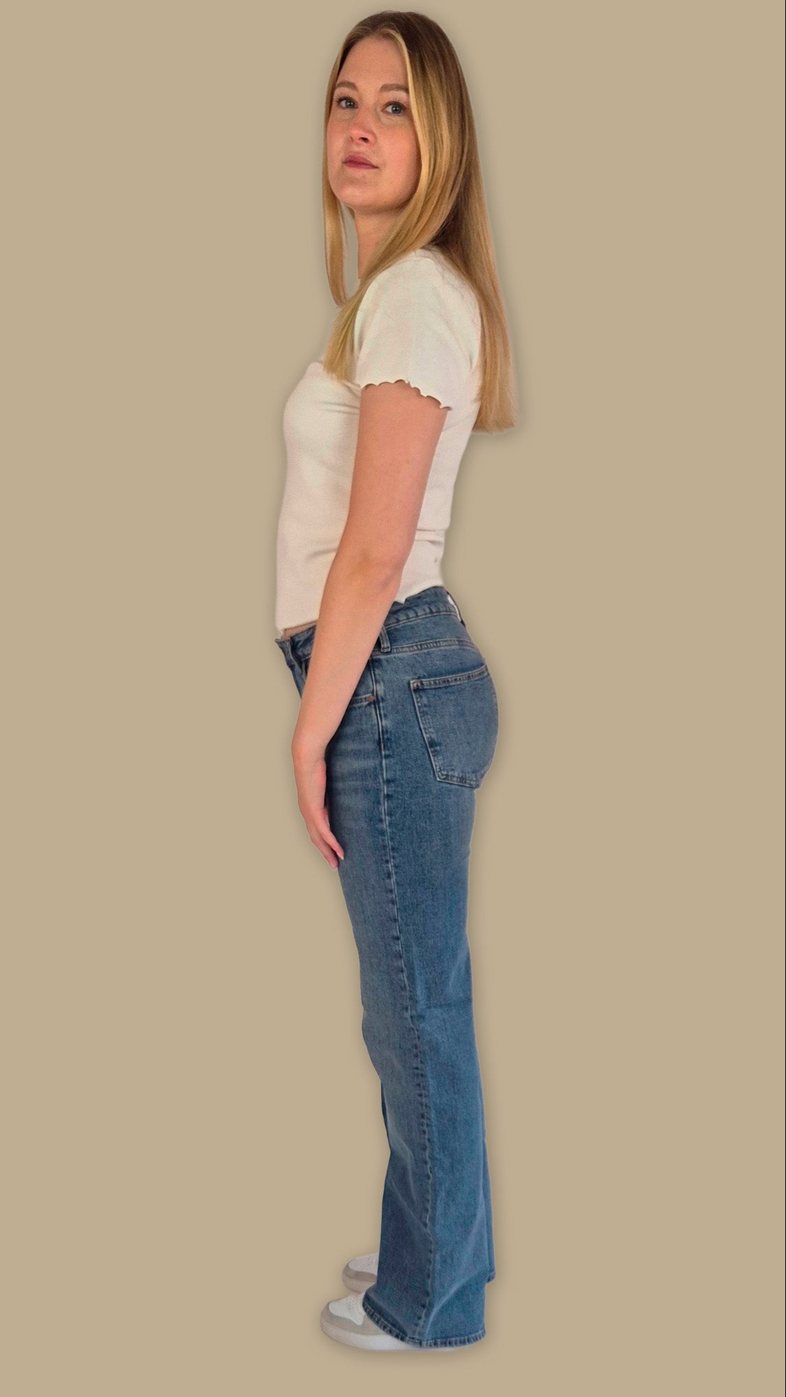 Die Jeans überzeugt mit Straight Fit und High-Waist-Schnitt, die ihr eine moderne Silhouette verleihen. Die mittelblaue Lorian Wash sorgt für einen authentischen Look.