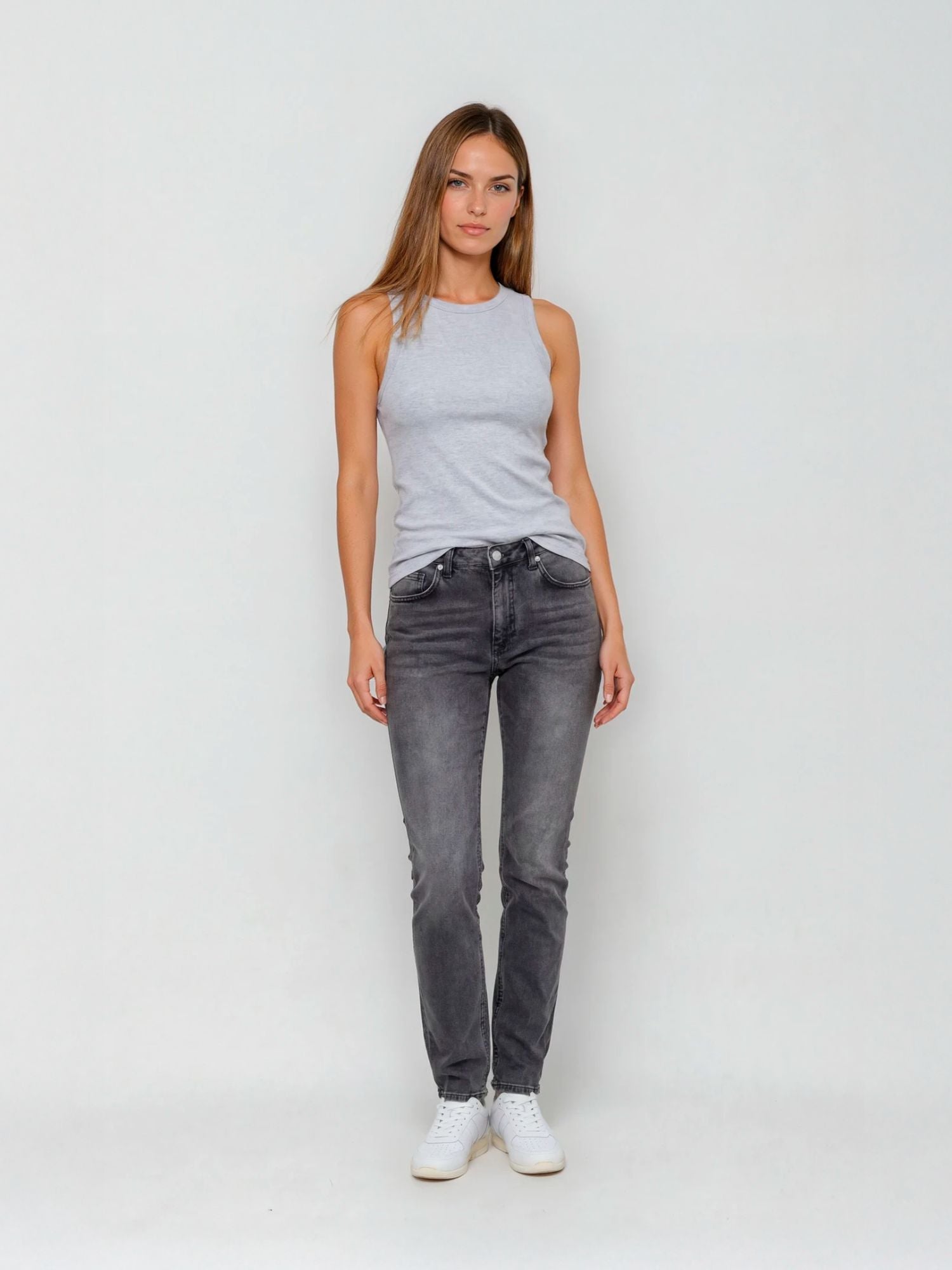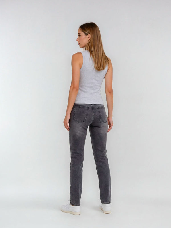 Extra lange Damen Straight Fit Jeans mit mittlerer Leibhöhe in Grey Black
