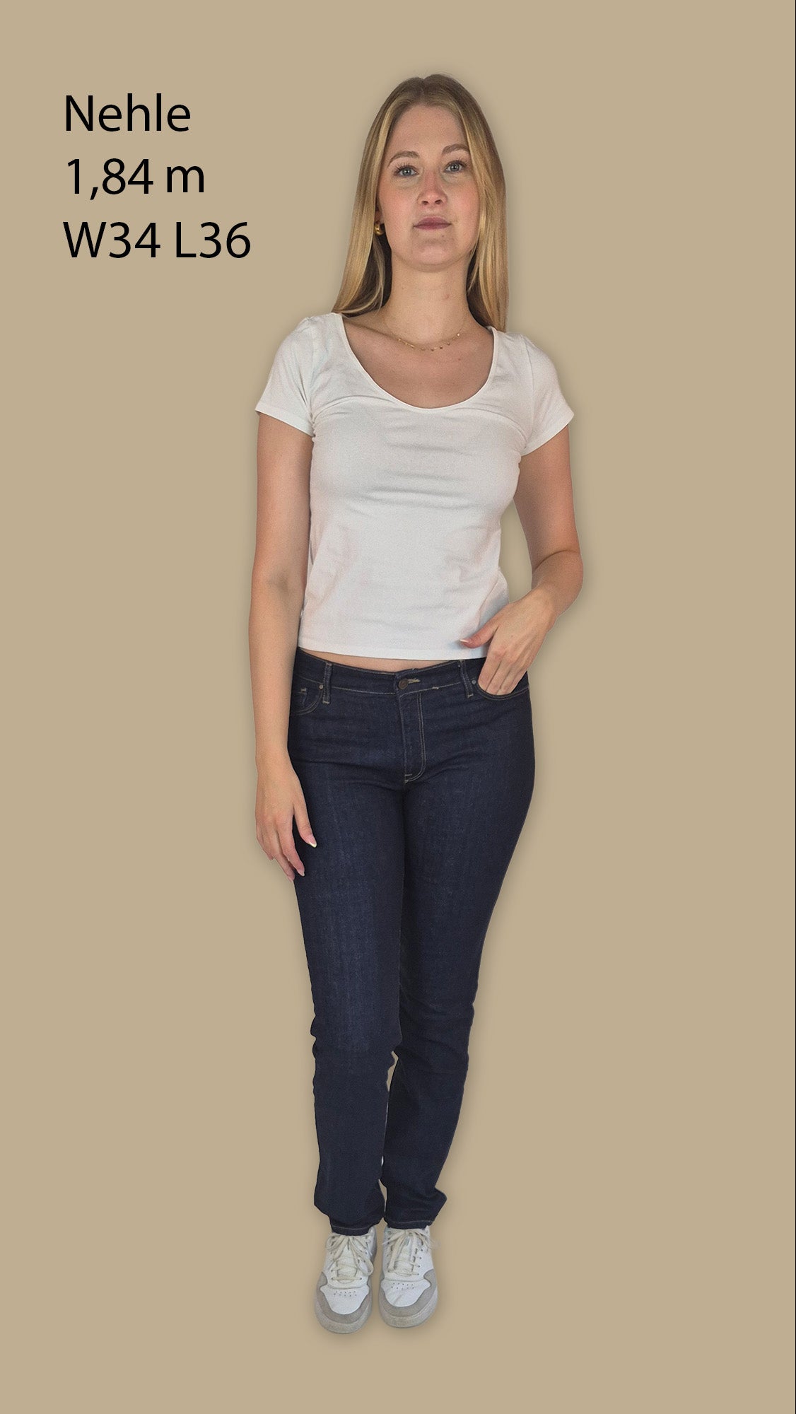 Modellinformationen: Nehle trägt Weite 34 / L36 bei einer Körpergröße von 1,84 m und einer Innenbeinlänge von 93 cm.