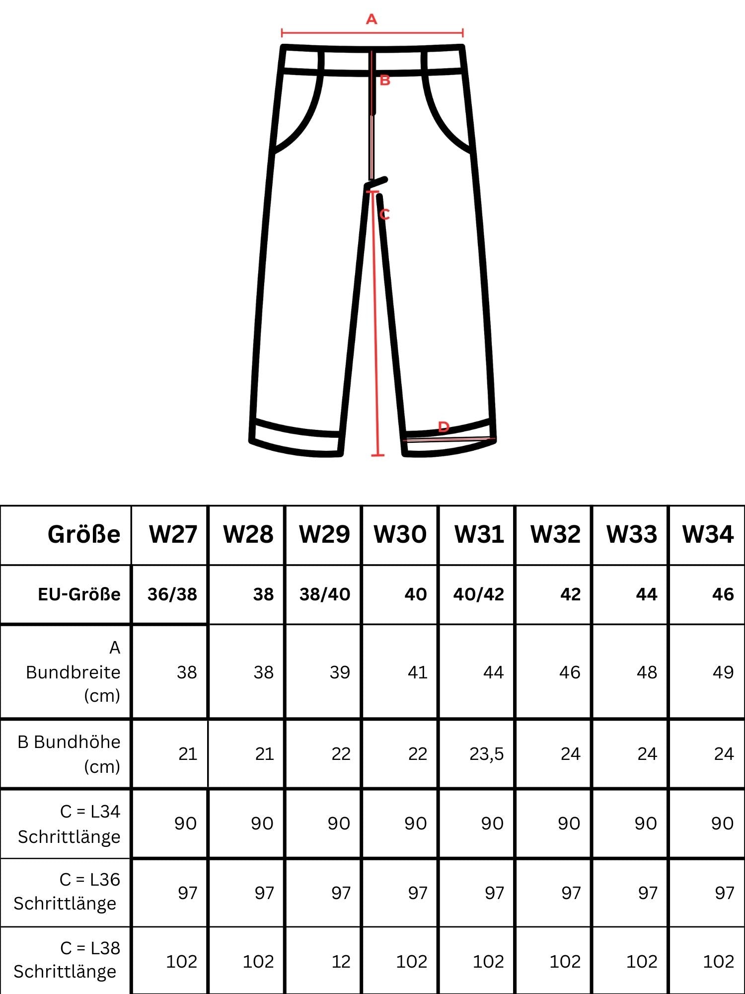 Länge 34: ca. 90 cm Innenbeinlänge