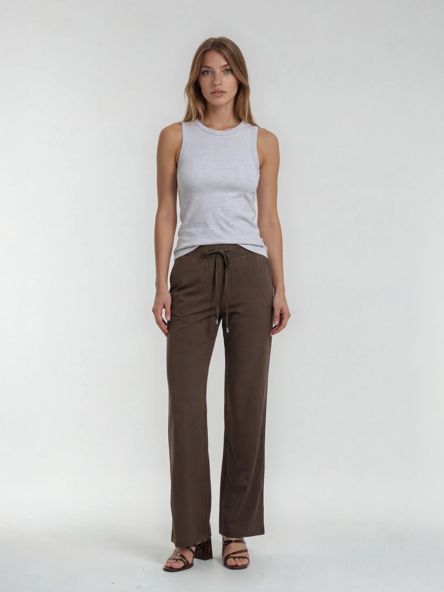 Der elastische Bund mit Bindekordel garantiert einen bequemen Sitz und eine flexible Passform. Der weite, gerade Beinverlauf sorgt für eine moderne Silhouette und macht die Hose zum vielseitigen Styling-Partner – ob sportlich mit Sneakern, lässig mit Sandalen oder elegant kombiniert mit Blazer und Heels.
