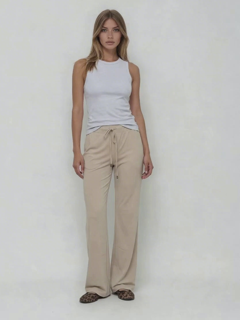 ONLY M - Sporty Chic Hose, Straight Leg, High Waist, Sabbia