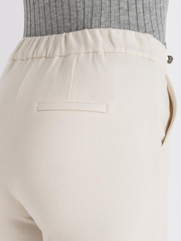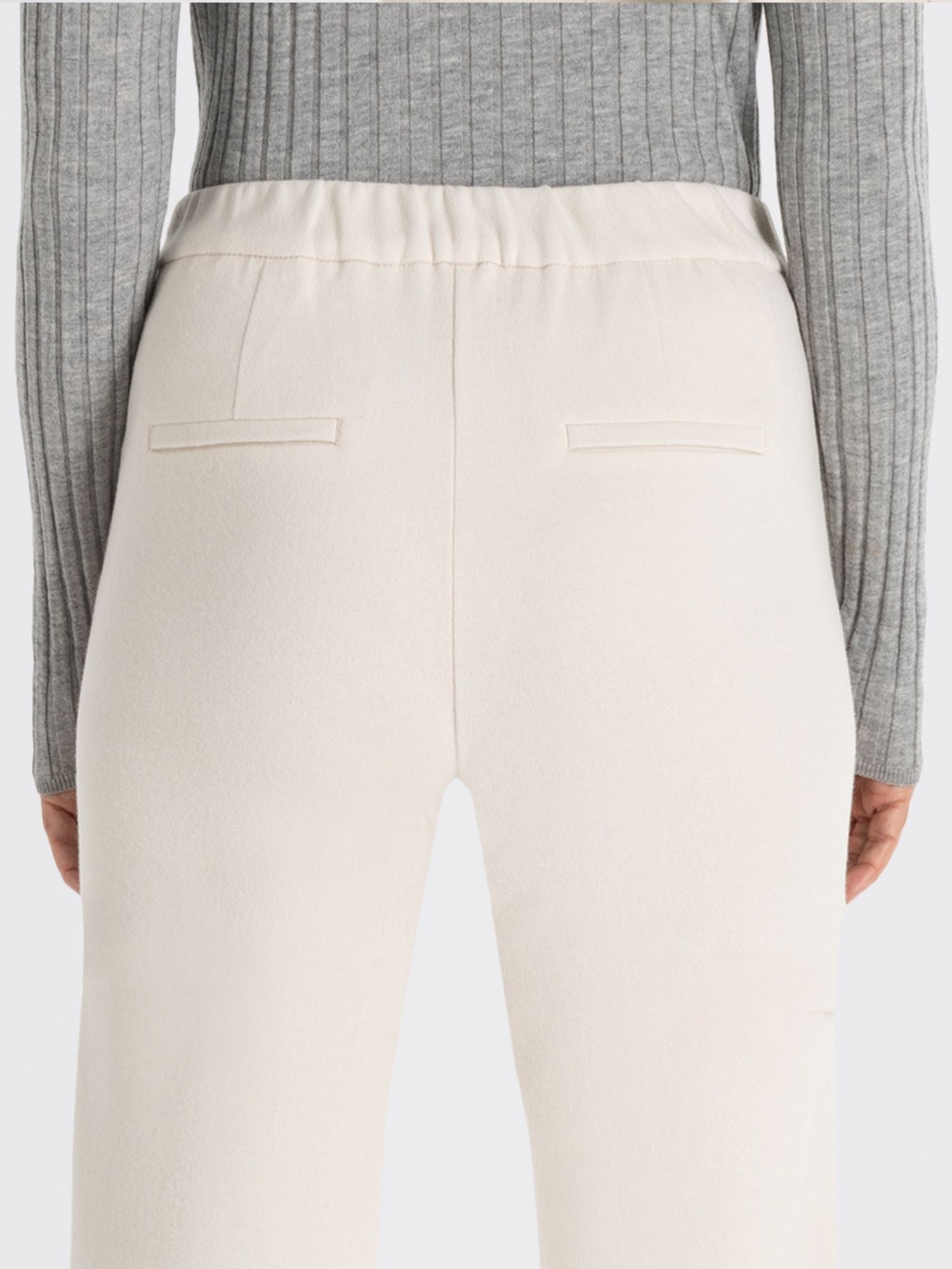 Gefertigt aus hochwertigen, leichten Stoffen, besticht die Hose durch ihren fließenden Fall und eine angenehm weiche Haptik. Sie trägt sich luftig und leicht, bleibt aber formstabil, ideal für den Alltag, das Büro oder besondere Anlässe. Der elastische Bund sorgt für maximalen Komfort und ermöglicht bequemes An- und Ausziehen ganz ohne Knopf oder Reißverschluss. Praktische seitliche Eingrifftaschen und eine dezente Paspeltasche hinten runden das funktionale Design elegant ab.