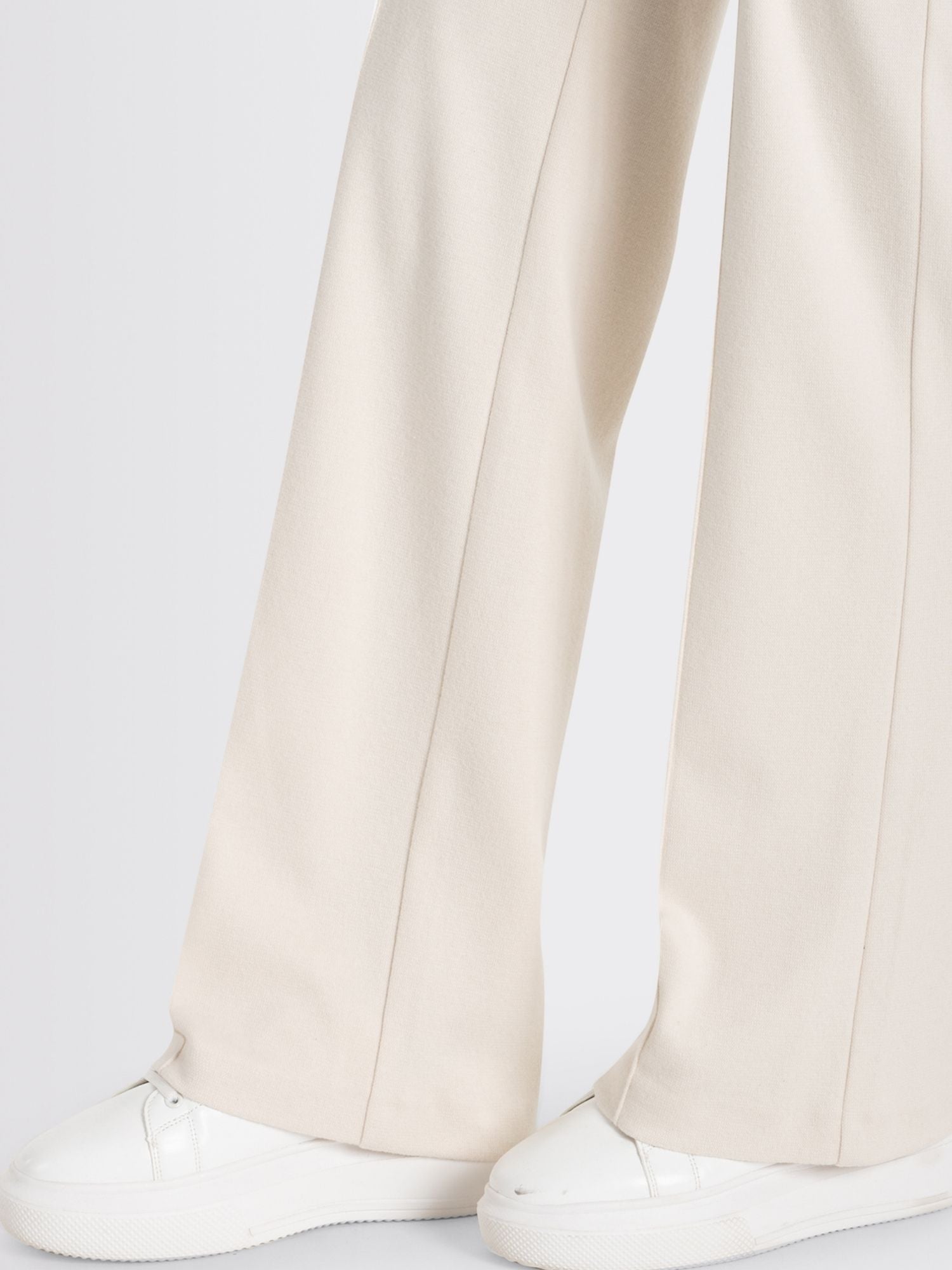 Model Nehle ist 1,84 m groß und trägt Größe 40 / Länge 36 mit einer Innenbeinlänge von ca. 92 cm. Die Hose überzeugt durch ihre ultralange Silhouette und den perfekten Mix aus sportlichem Chic und femininer Eleganz.