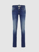 Die Jeans bietet durch ihren elastischen Denim eine bequeme Passform mit schmalem Beinverlauf und tiefen Sitz auf der Hüfte.