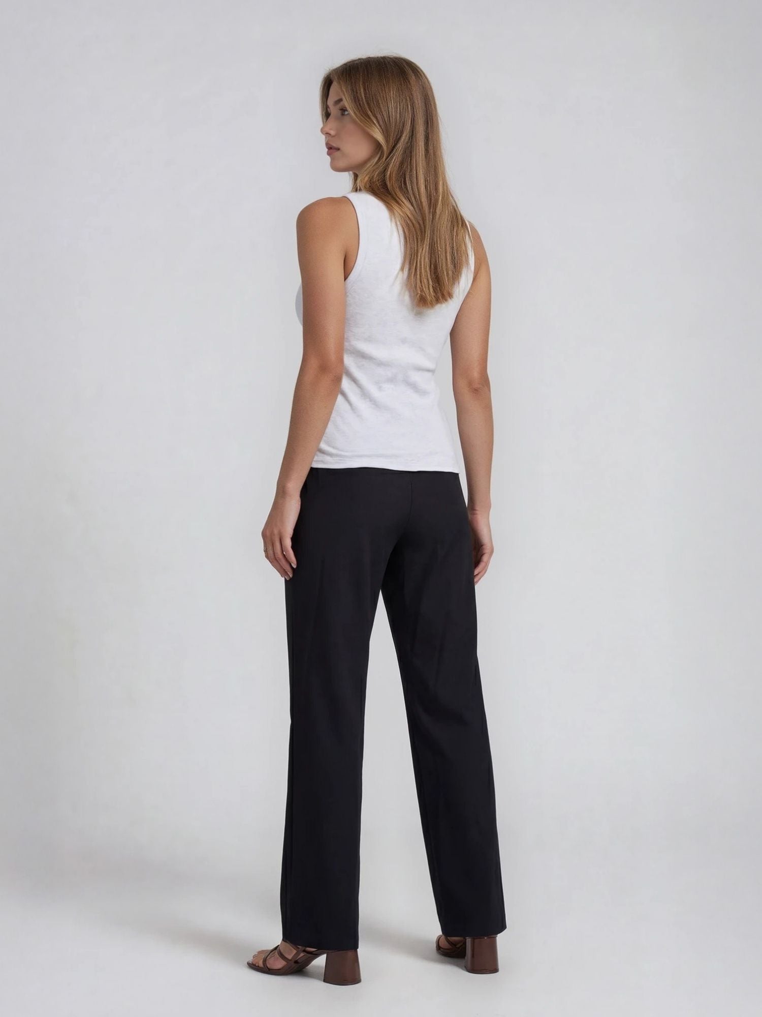 The high-quality blended fabric, which looks like bamboo, gives the pants a particularly sophisticated look. The high-waisted fit accentuates the waist and creates a feminine silhouette, while the straight-cut leg creates a loose and modern look. These plain-colored pants are truly versatile and can be styled in a variety of ways—whether elegantly with a blouse or casually with a T-shirt and sporty top.