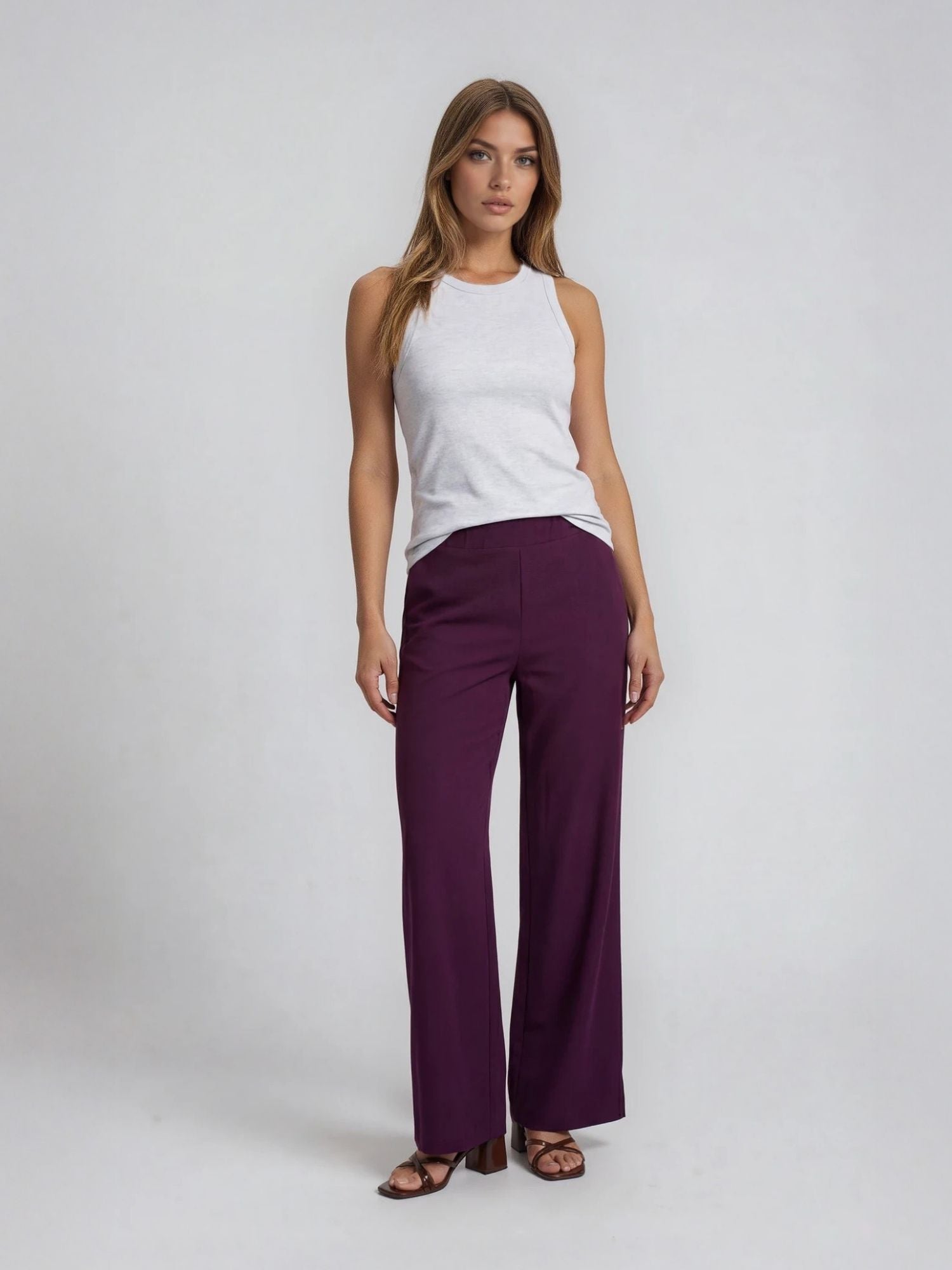 The high-quality blended fabric, which looks like bamboo, gives the pants a particularly sophisticated look. The high-waisted fit accentuates the waist and creates a feminine silhouette, while the straight-cut leg creates a loose and modern look. These plain-colored pants are truly versatile and can be styled in a variety of ways—whether elegantly with a blouse or casually with a T-shirt and sporty top.