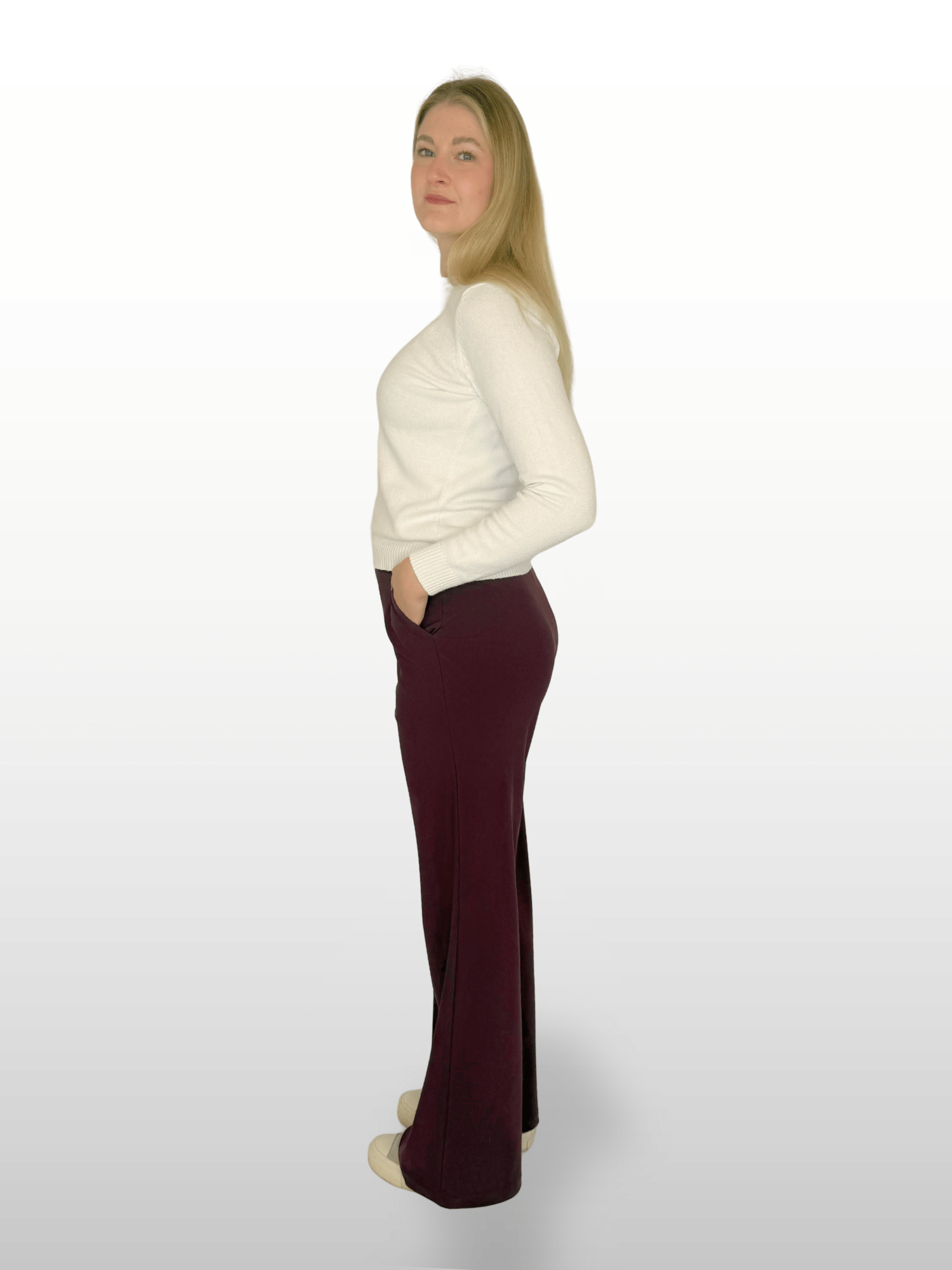 The high-quality blended fabric, which looks like bamboo, gives the pants a particularly sophisticated look. The high-waisted fit accentuates the waist and creates a feminine silhouette, while the straight-cut leg creates a loose and modern look. These plain-colored pants are truly versatile and can be styled in a variety of ways—whether elegantly with a blouse or casually with a T-shirt and sporty top.