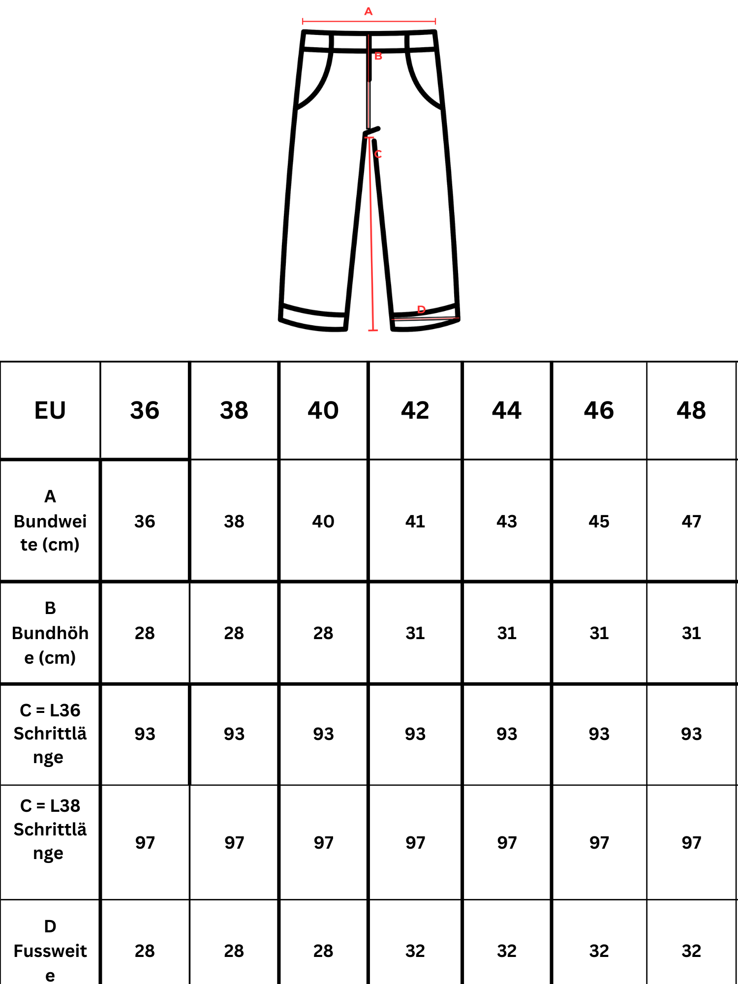 Größenberatung: Angabe der Damenkonfektionsgröße NICHT in Inch.