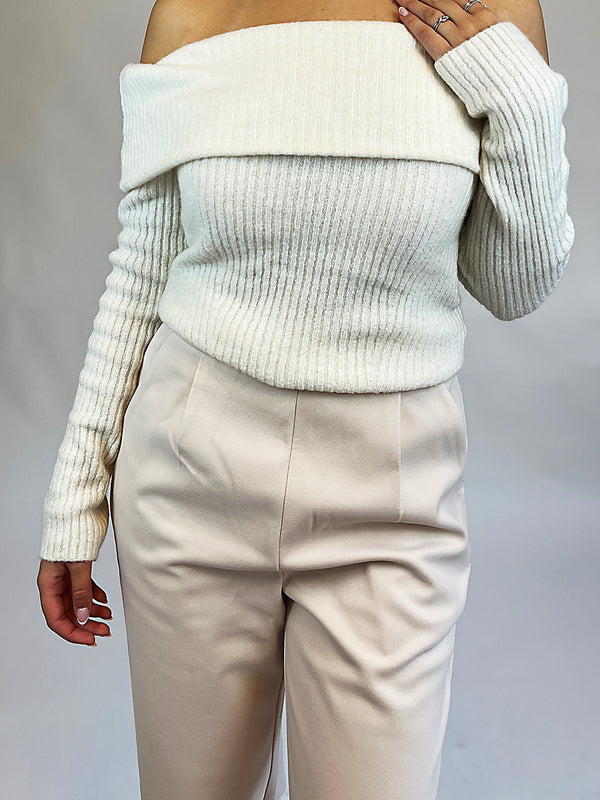 BOGILVY - Wellness suit trousers, straight fit, high waist, beige